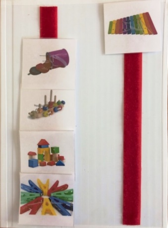 Если в системе работать с ребёнком, то принцип работы ему знаком. Ребёнок переносит первую картинку на другую сторону поля чек-листа и из общего количества подготовленных дидактических пособий выбирает игру для выполнения первого задания. Тем самым оставляя отметку о выполнении.