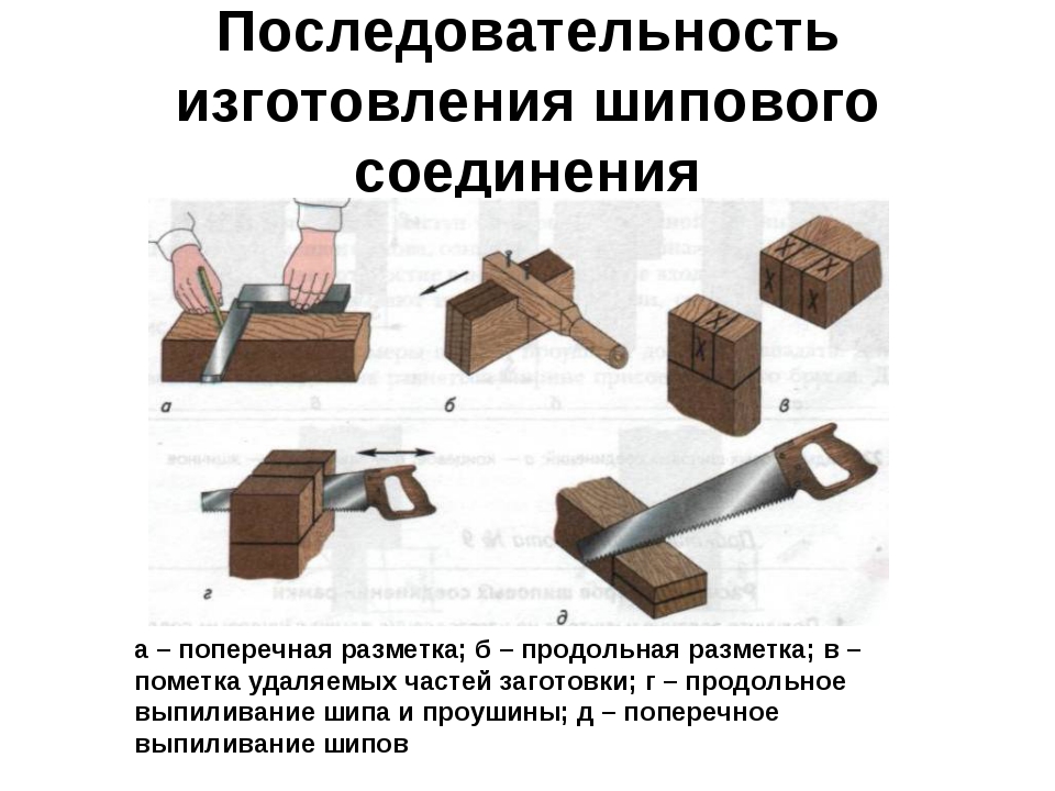 Прежде чем начинать обработку заготовки под соединение (отпиливание, выдалбливание, обработка рашпилем), нужно разметить заготовку. От правильности и точности разметки во многом зависит качество детали. Даже небольшие ошибки в нанесении разметочных линий могут повлечь за собой непоправимый брак. Несмотря на кажущуюся простоту этой работы и несложность применяемого инструмента, необходимо быть очень внимательным, а по окончании разметки тщательно проверить сделанные построения.
