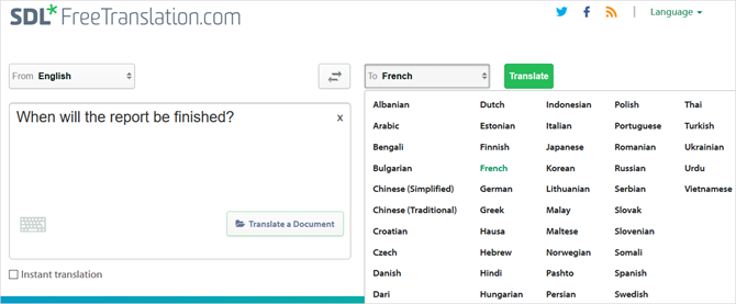 Бесплатный перевод SDL предлагает о 45 языков для простых переводов. Затем вы можете прослушать перевод, скопировать его, поделиться им или легко распечатать. И вы можете включить функцию мгновенного перевода, чтобы получать переведенный текст по мере его ввода.
