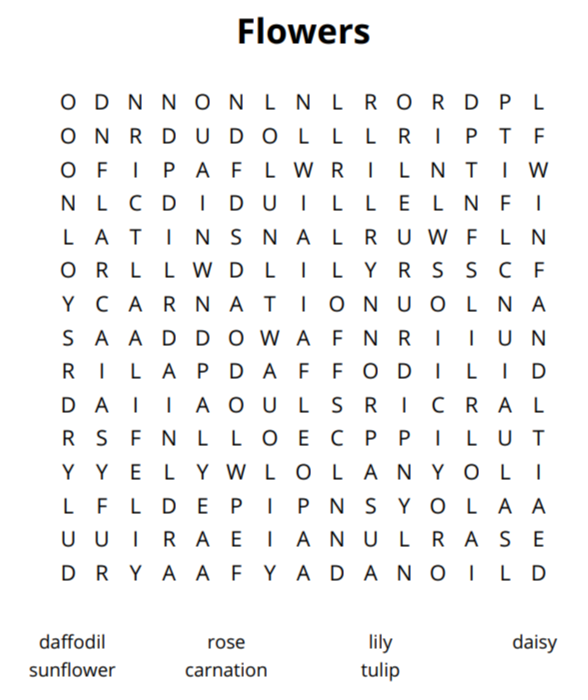 arnation, rose, sunflower, daisy, tulip, lily, daffodil
