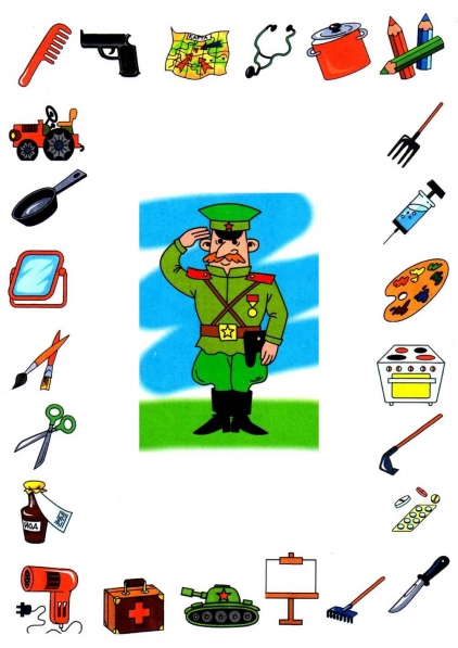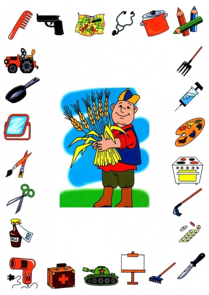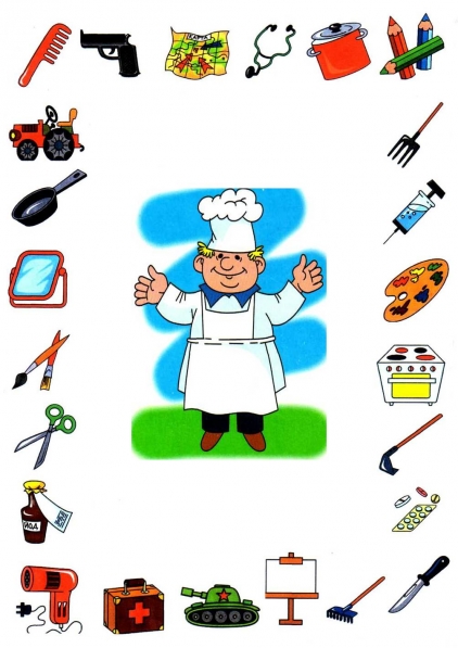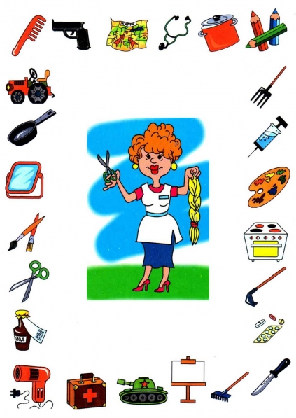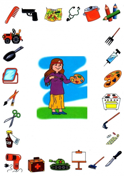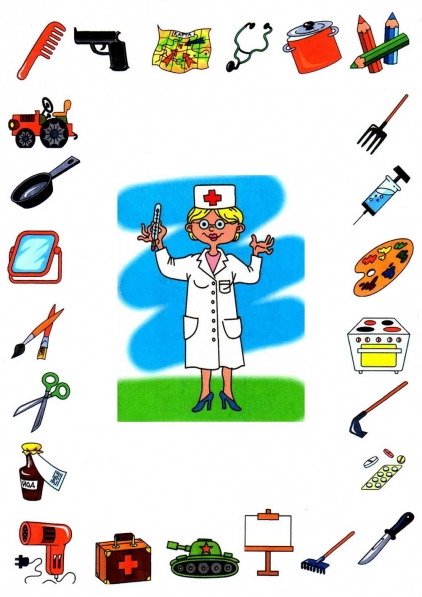 Вам нужно подставить нужную карточку и сказать, людям какой профессии необходимы эти инструменты?