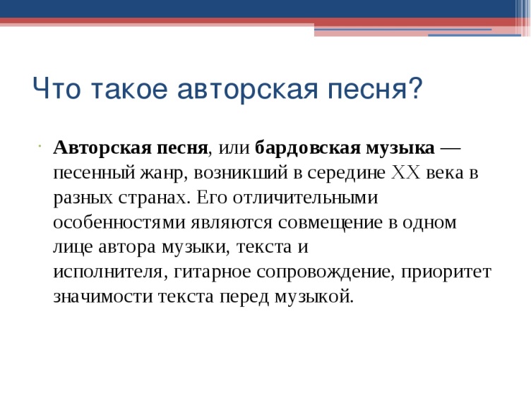 Авторская песня – своеобразный городской фольклор, который называется по-разному: бардовская песня, самодеятельная песня, поэзия под гитару. Кто же они – авторы-исполнители этих песен?