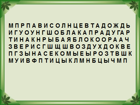 У: Что объединяет все эти слова? Д: Все слова на тему «Природа» У: Сегодня на уроке мы завершаем изучение большого раздела «Природа» - Что такое природа?
