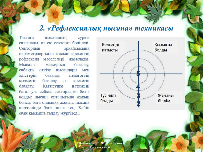| Сабақтың соңы Рефлексия 2 мин | Сабақтың соңында оқушылар өз-өздерін«Рефлексиялық нысана»бағалау әдісі арқылы бағалайды.