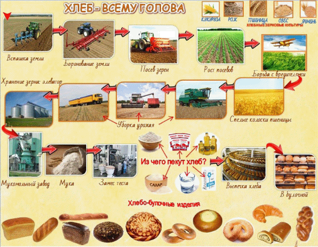 «Педагог – ребёнок» наша задача – вызвать эмоции и передать суть через визуальный образ (инфоплакат), тем самым мы привлекаем внимание воспитанников к нужному объекту, к важной информации, проблеме. Данное направление начали внедрять в работу с детьми 5–6 лет групп компенсирующей направленности в ходе знакомства с новым материалом и закрепления полученных знаний детьми как в образовательной, так и в свободной деятельностях. Педагогами нашего учреждения были созданы инфоплакаты на такие темы: «Хлеб – всему голова» (рис. 2), «Транспорт», «Космос», На- секомые», «Лекарственные травы» и др., а также подобран примерный речевой материал к каждой лексической теме. Это даёт педагогу возможность выбора при использовании дидактических игр, игровых упражнений в зависимости от поставленных задач и знаний детей [2, с. 50]. Для формирования у воспитанников элементарных представлений о сезонных