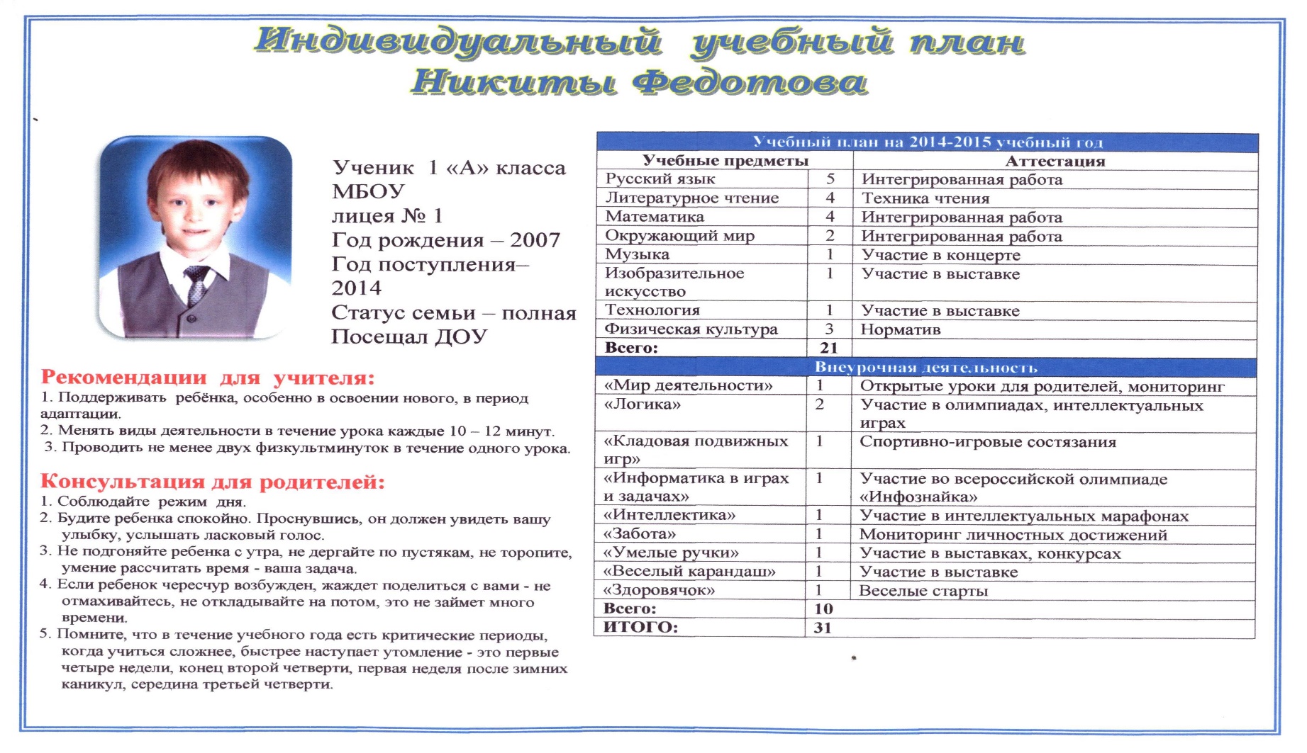 Для таких ребят был составлен индивидуальный образовательный маршрут.