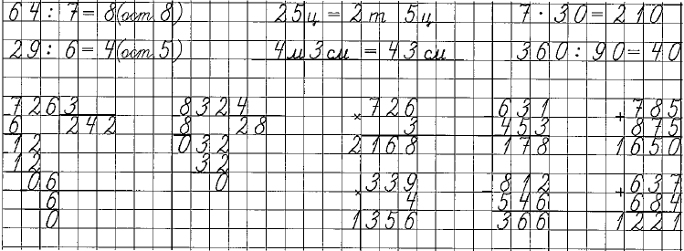 5. Выполни деление столбиком 243 : 3 884 : 4 465 : 5 234 : 2 356 : 4 465 : 3 831 : 7 852 : 8 6. Реши примеры, записывая столбиком. 274 + 473 934 – 547 618 : 2 109 * 6 318 + 269 320 – 283 876 : 6 134 * 7 363 + 498 725 – 248 959 : 7 128 * 4 562 + 268 909 – 288 856 : 4 350 * 2 | ||||