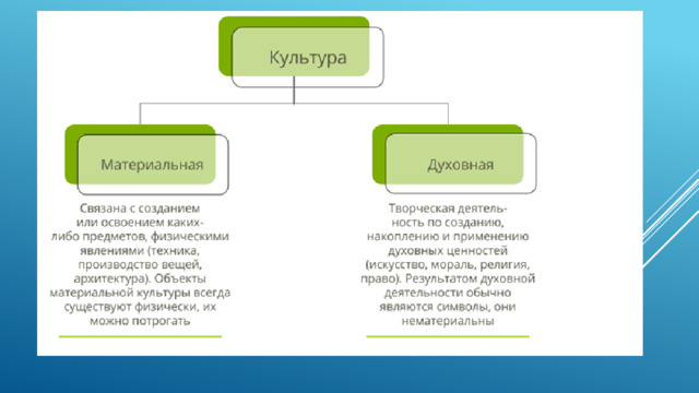 2. «Культура»- все виды преобразовательной деятельности человека, а также ее результаты - совокупность материальных и духовных ценностей, созданных человеком
