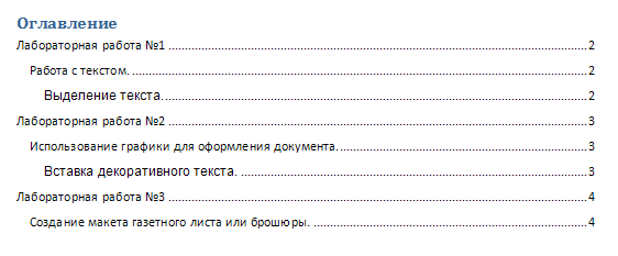 Создать новые страницы, чтобы каждая лабораторная работа начиналась с новой страницы, а на первой странице было оглавление.