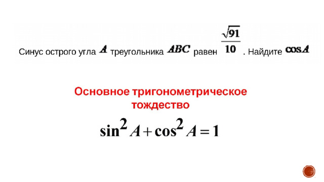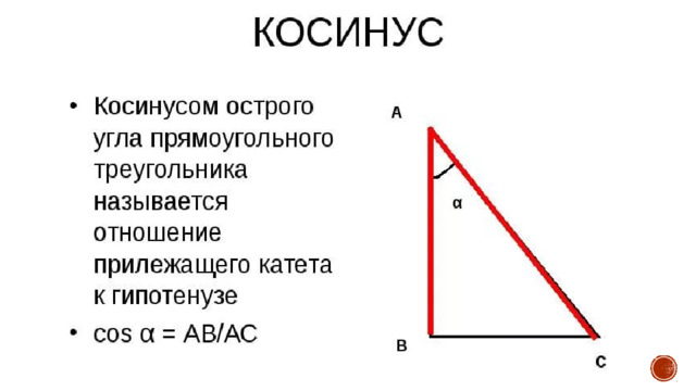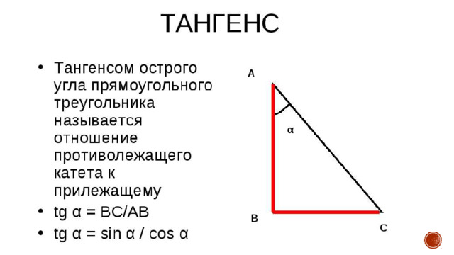 - Котангенсом острого угла прямоугольного треугольника называется отношение прилежащего катета к противолежащему