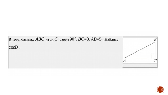 В треугольнике ABC угол C равен 90°, AC=4, AB=5, ВС=3. Найдите