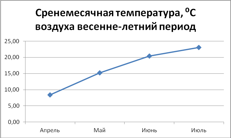 Из графика видно, что среднемесячная температура и влажность благоприятствует для развития коккомикоза.