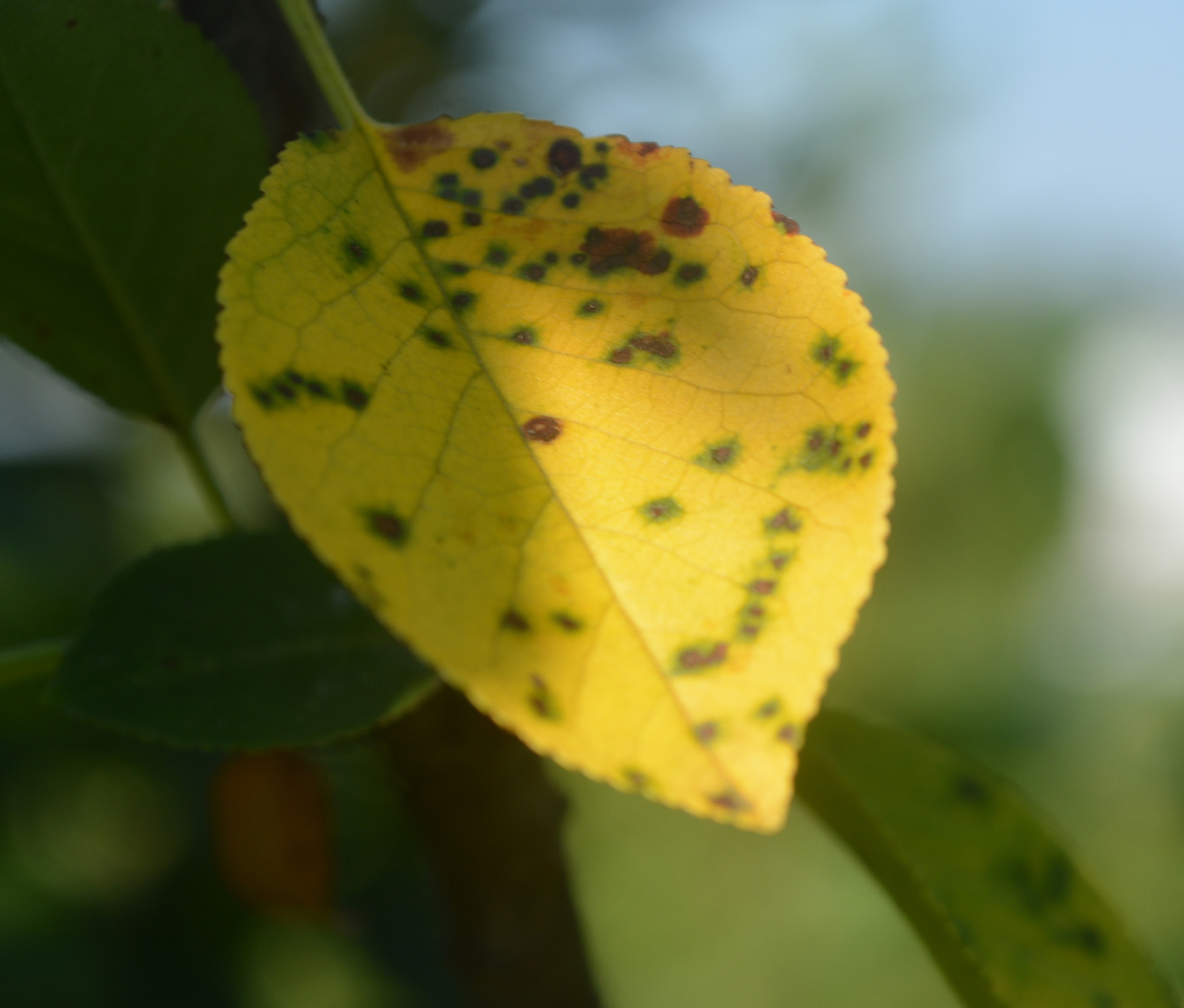 5 – поражено более 50 % листьев, пятна слившиеся, бурые, ткань листа может частично выпадать, отмечено массовое опадение листьев.
