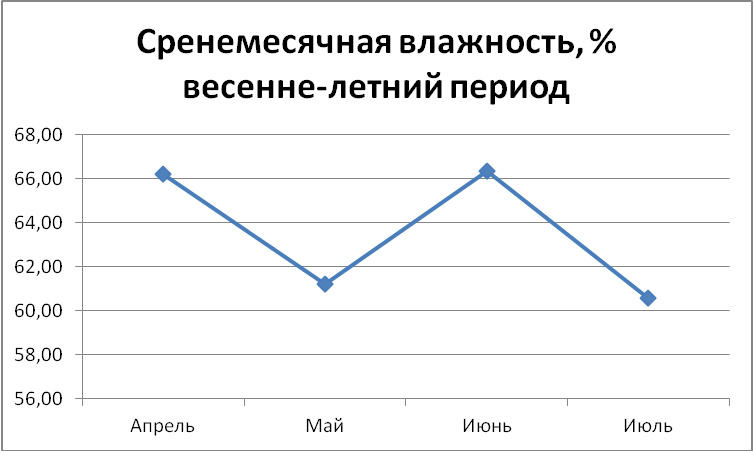 Рис. 8 среднемесячная влажность за весенне-летний период 2025 г