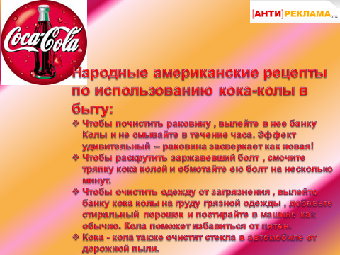 Наблюдения показали , что компоты в столовой не пользуются популярностью , все хотели бы видеть на своих столах разного рода газировку. Однако, важно знать , что именно газированными напитками можно нанести реальный вред своему организму. Газировка содержит кислоту , которая разъедает зубную эмаль
