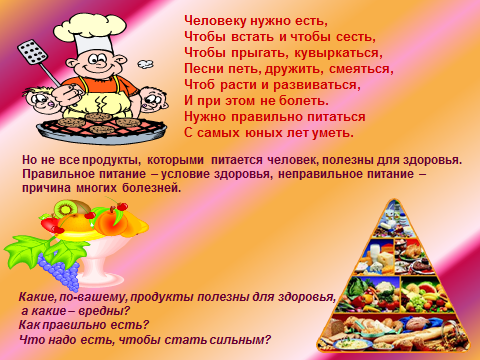 Нужно питаться в назначенный час Тогда от болезней мы убежим!